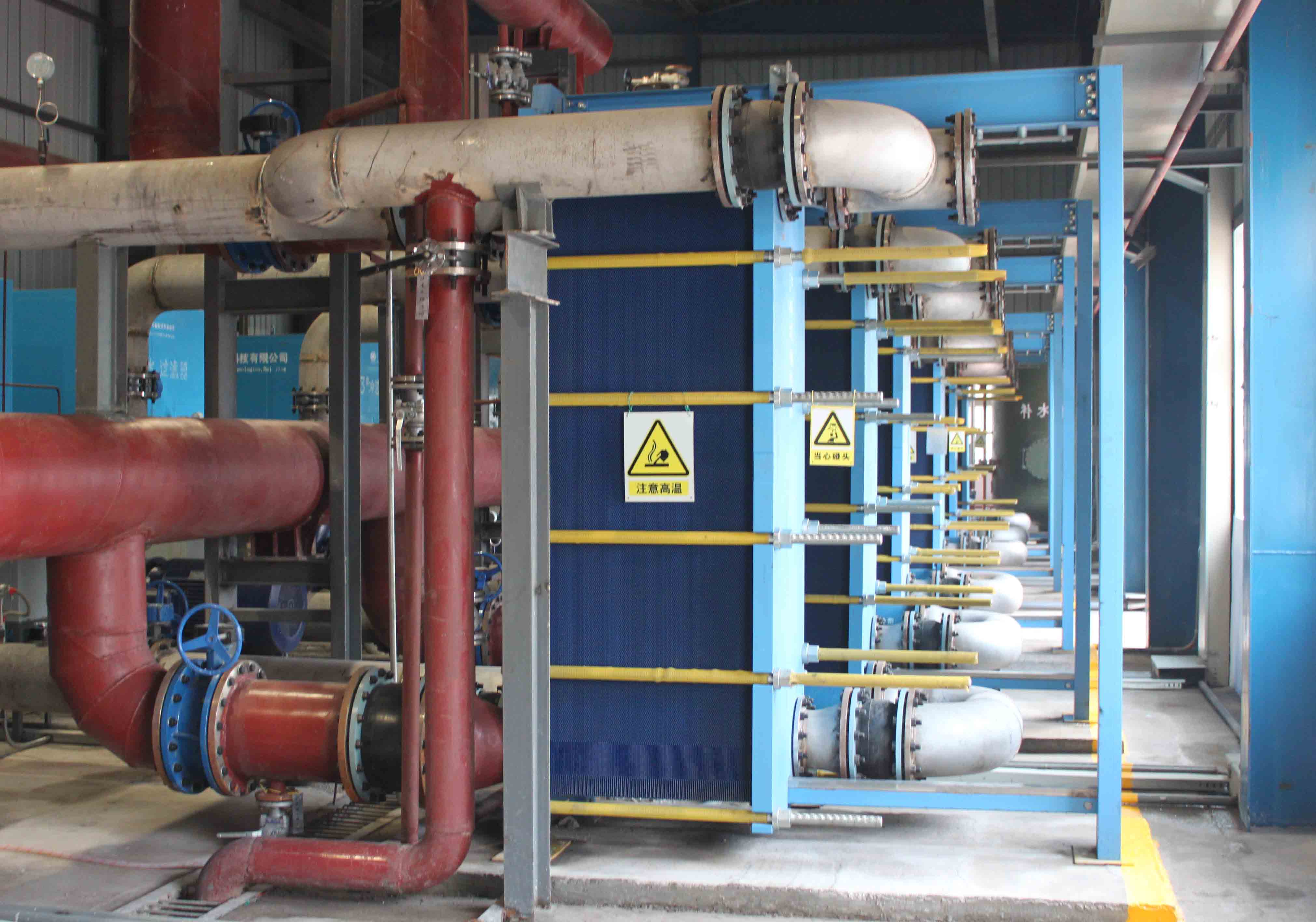 2) 項目規(guī)模:利用泰山鋼鐵2臺1780m3高爐的沖渣水可提取渣水熱量43.46MW,采暖面積達86.92萬平方米。新建換熱站兩座,換熱站占地34.5m長*12m寬*5m高,每座換熱站設(shè)置3套機組,另各設(shè)置一臺蒸汽換熱器作為備用熱源。